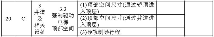 斜行電梯的監(jiān)督檢驗和定期檢驗項目及類別、檢驗內(nèi)容與要求以及檢驗方法,除以下涉及項目按照調(diào)整后的要求執(zhí)行外,其他項目(不含3.4、7.4、8.12項以及4.6、8.4項中針對汽車電梯和轎廂面積超出規(guī)定載貨電梯的項目和要求)按照本規(guī)則附件A相應(yīng)要求執(zhí)行: