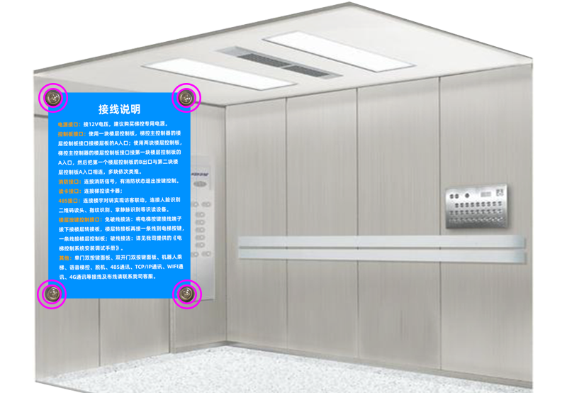等吸在電梯按鍵后面的槽中,施工人員站在電梯里打開(kāi)電梯檢修口就可以安裝設(shè)備。